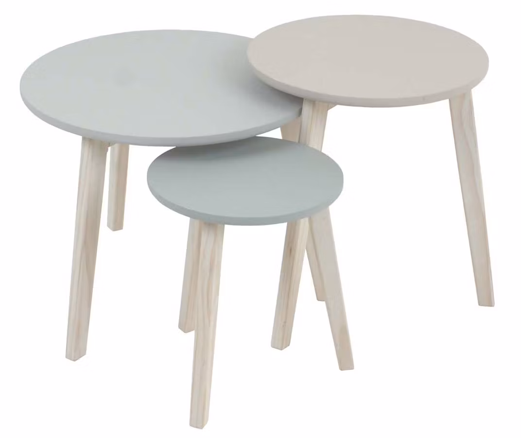 Djursholm är tre snygga satsbord i olika färger som passar till de flesta hemmen p.g.a. deras dova färger. Ett bord är grönt, ett är rosa och ett är grått. Riktigt snyggt som sidobord eller som soffbord!